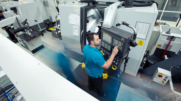 In onze innovatiefabriek en de productie in Fellbach trekken we de digitale transformatie van WITTENSTEIN. Het doel: een slimme fabriek met de mens als beslissend middelpunt van de productie. Hij wordt in zijn werk ondersteund door een netwerk van fysieke en virtuele productietechnieken, zoals intelligente besturingssystemen.